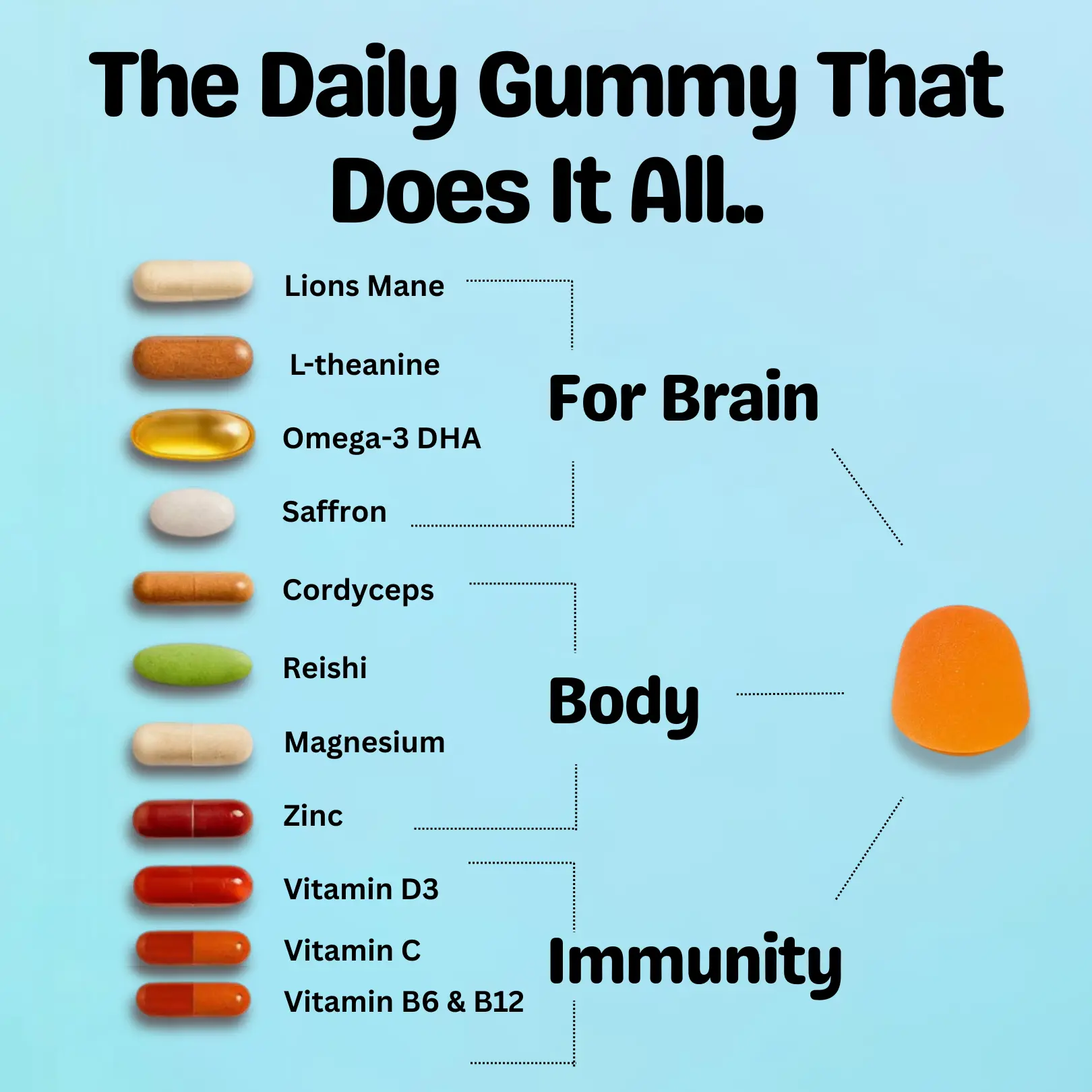 12 supplements. 1 tasty gummy. Absolutely Zero Fuss.