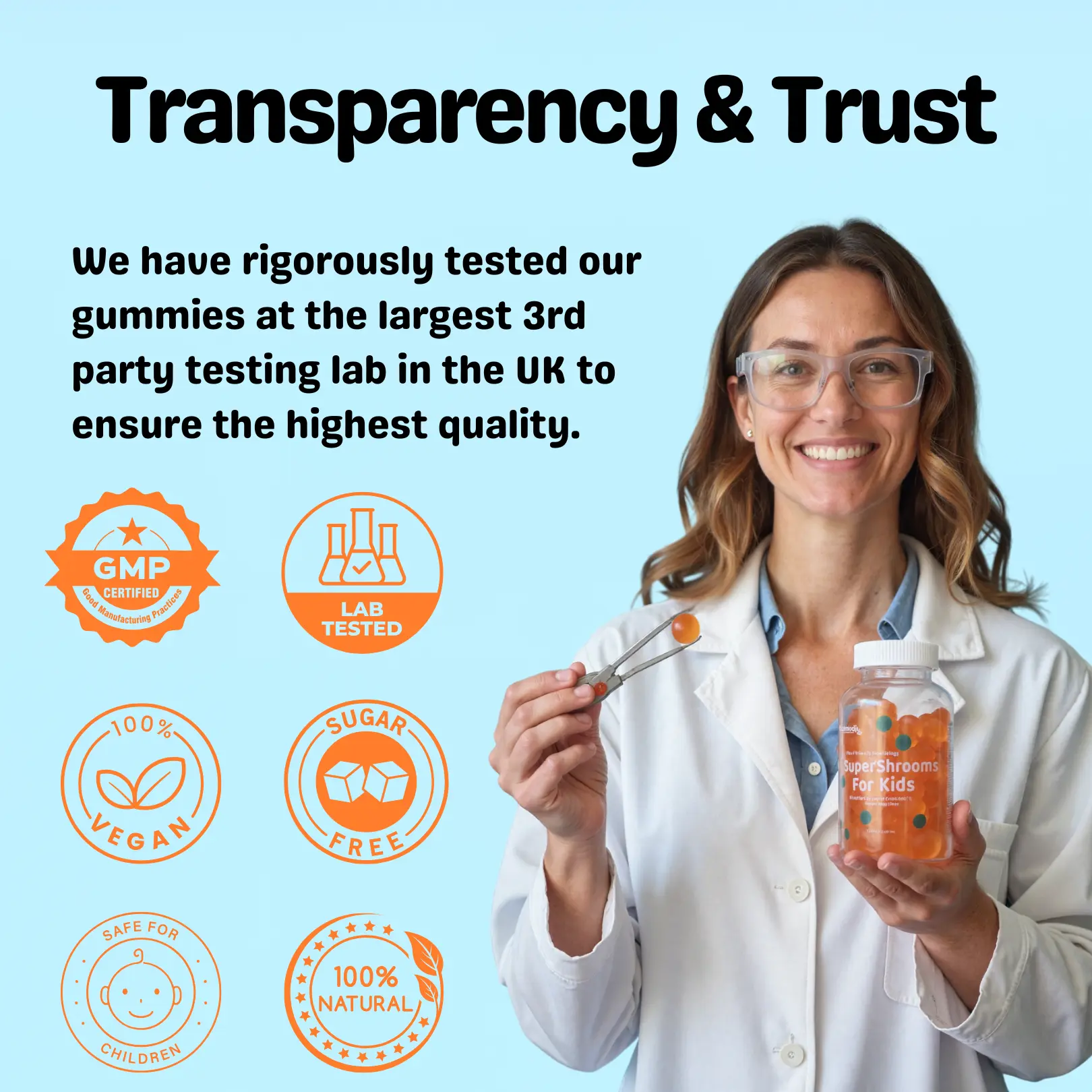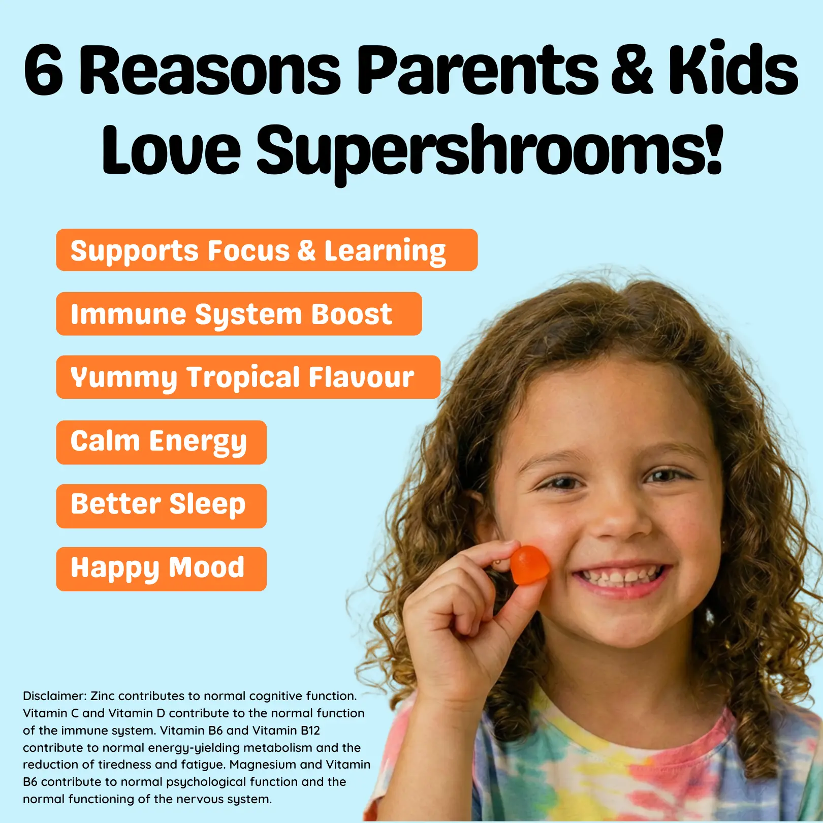 Lion’s Mane, Reishi & Cordyceps, included in child-formulated doses.